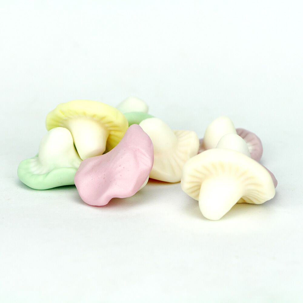 Sucre, sirop de glucose, eau, gélatine (type non précisé), acides : E270, E296, E330, arômes, concentrés de spiruline, carthame, raisin, carotte noire, colorant : E160c, huile végétale (coco), agent d’enrobage : cire de carnauba.