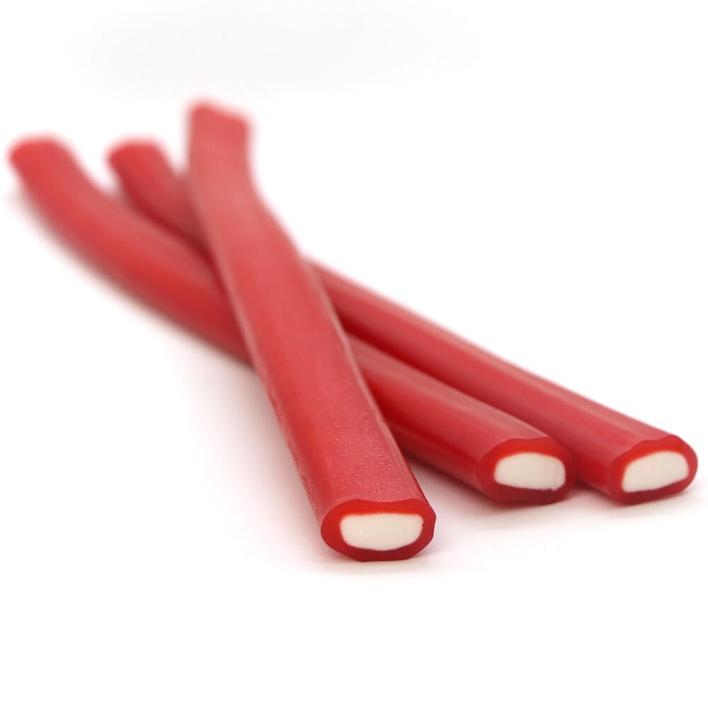 Sucre, sirop de glucose et de fructose, farine de blé (gluten), amidon, acidifiants : E270, E296, E330 ; correcteur d’acidité : E325, E331 ; graisses végétales (palme, coco), gélatine (porcine), humectant : E422 ; émulsifiant : E471 ; colorants : E120, E160c. Peut contenir des traces de soja et de moutarde.