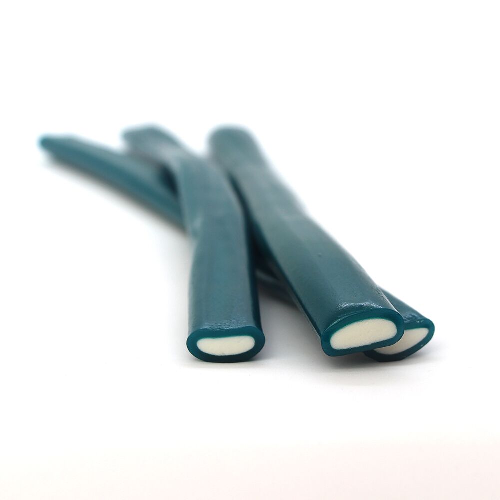 Sucre, sirop de glucose et de fructose, farine de blé (gluten), amidon, acidifiants : E270, E296, E330 ; correcteur d’acidité : E325, E331 ; graisses végétales (palme), gélatine (porcine), humectant : E422 ; émulsifiant : E471 ; colorants : E133. Peut contenir des traces de soja et de moutarde.