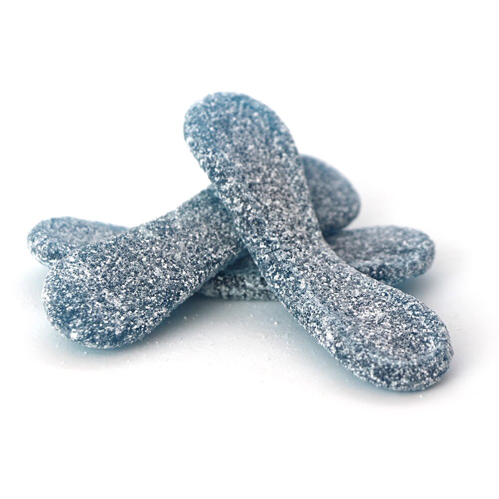 Sucre, sirop de glucose, amidon de pomme de terre modifié, eau, gélatine (porcine), acides : E270, E296, E330, E350 ; arôme, colorant : E133.