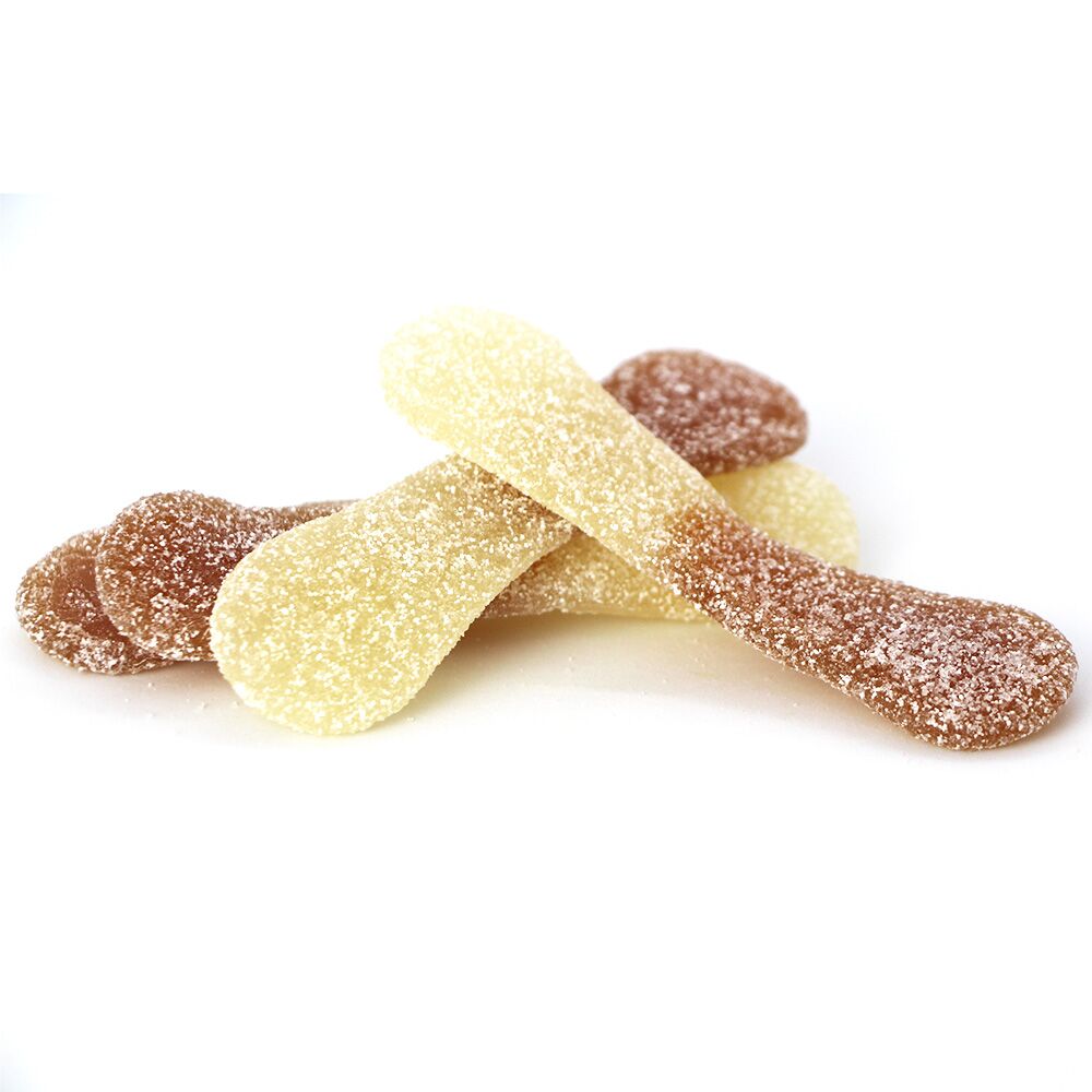 Sucre, sirop de glucose, amidon modifié, gélatine (porcine), acidifiants (acide lactique, acide citrique, acide malique), correcteur d’acidité (malates de sodium), arôme, sucre caramélisé. Sans gluten.