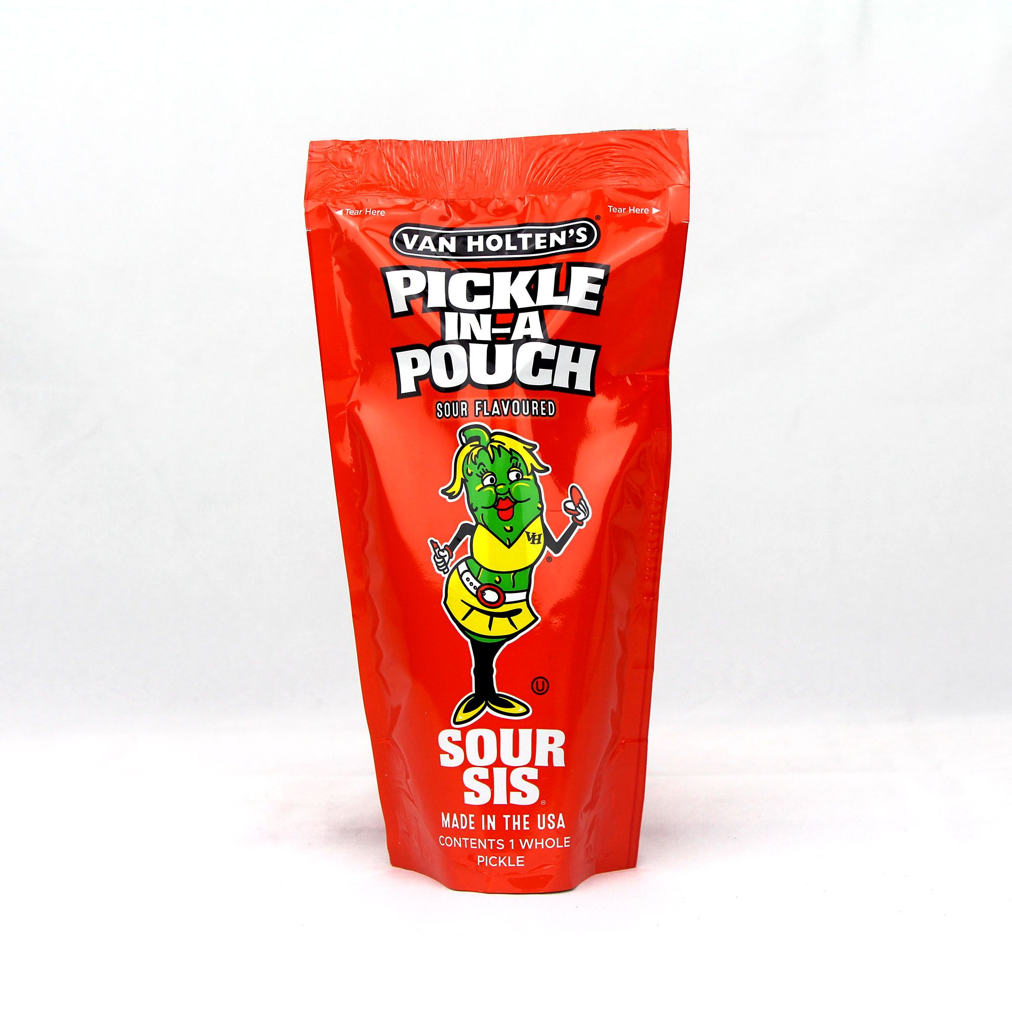 Que ce soit pour tenter le fameux “Sour Pickle Challenge”, compléter une box de snacks américains ou simplement tester un goût unique, Van Holten’s Sour Sis Pickle est un incontournable. Croquant, acidulé, drôle à partager… un snack pas comme les autres à découvrir absolument !